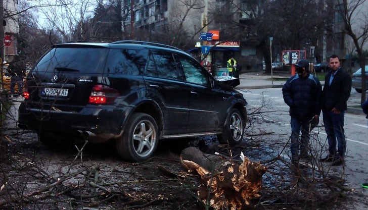 Джип Мерцедес буквално е изкоренил две дървета на улица "Доростол"