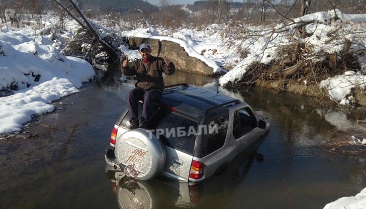 Още на първите 4-5 метра обаче джипът потънал и започнал да се пълни с вода.