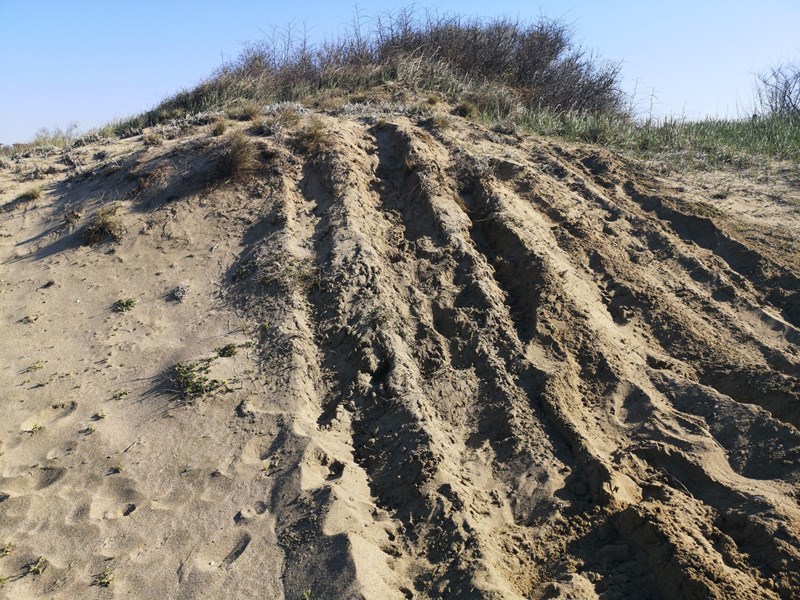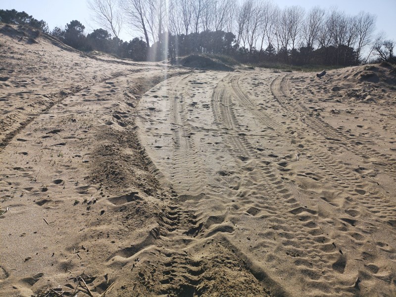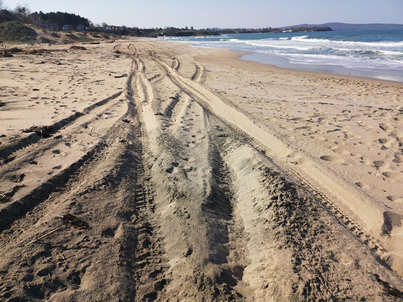 Дюните на плаж "Корал" се унищожават от тежко моторно превозно средство, алармираха във Фейсбук групата "Да запазим Корал".
