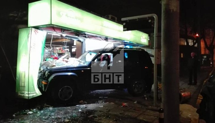 Джип с временна регистрация се блъсна в магазин за алкохол, непосредствено до спирка на градския транспорт в района на Сточна гара в София