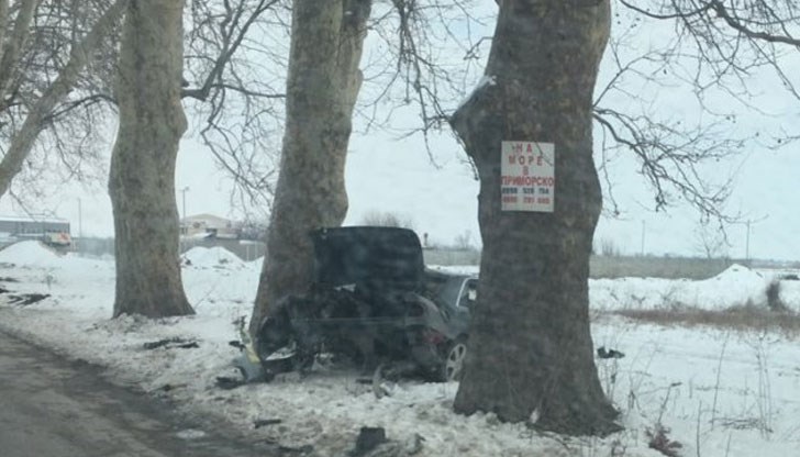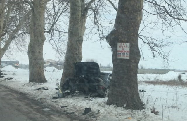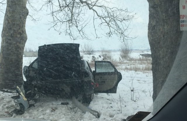 От удара леката кола е изхвърчала край пътя. За малко не се е забила в един вековен чинар. Получила е много тежки поражения. На мястото са разпилени часто от бронята и предната му решетка.