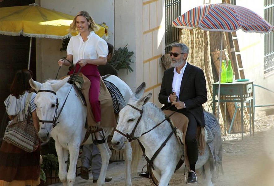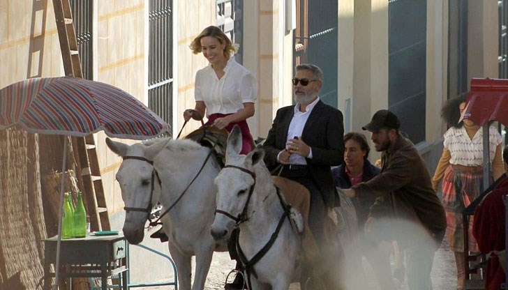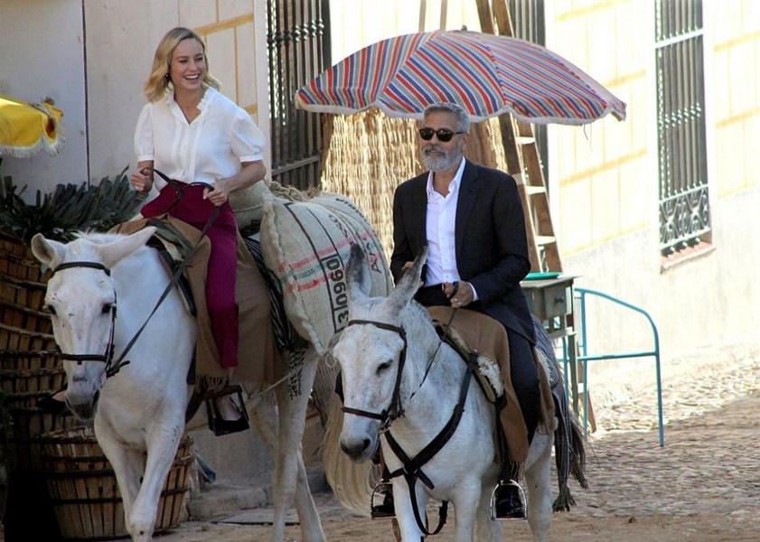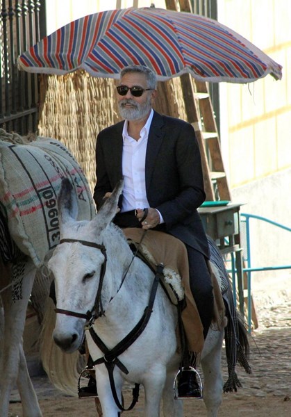 Джордж Клуни беше заснет от световните медии в градче, близо до испанската столица Мадрид, да язди ... муле!