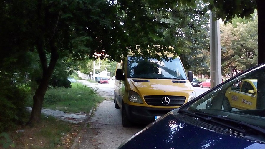 Е, не може да не му се признае обаче едно нещо! Той че си е паркирал на тротоара като цар се вижда, но пък взел, че оставил и място да минават пешеходците. Но това е само така, защото самия тротоар е по-широк. Малко се съмнявам обаче майка с бебешка количка да може да мине спокойно през пролуката ...