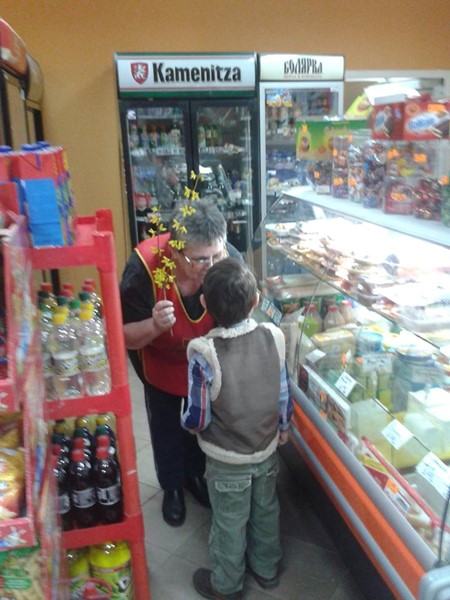 Той им подари клонка цъфнала Форцизия (която е предвестник на идващата пролет).