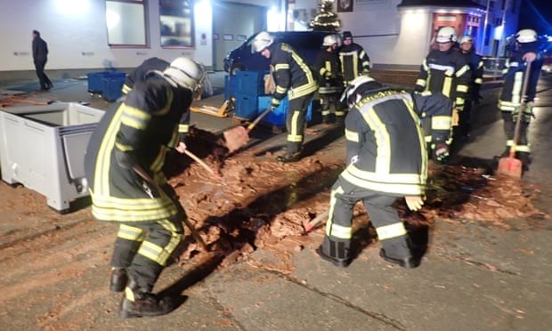Един тон шоколад изтече върху улица в западногермански град.