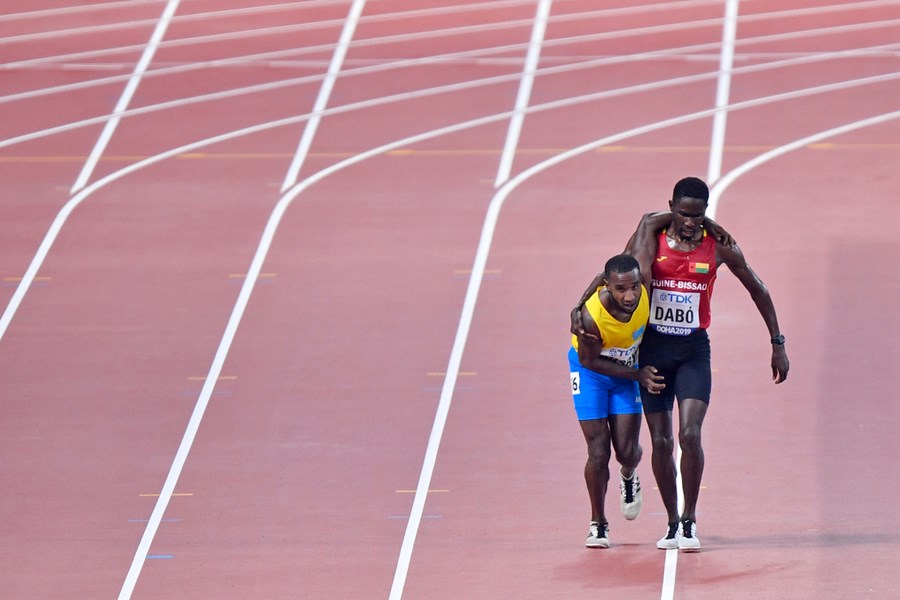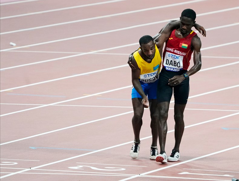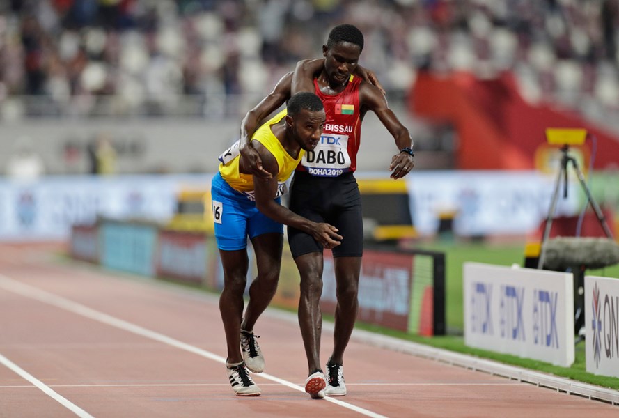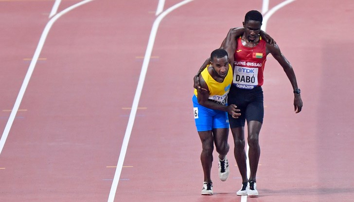 Първият ден от Световното първенство по лека атлетика в Доха ще бъде запомнен с един велик момент на спортсменство, съобщава сайтът dsport.bg.