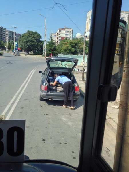 Добър ден, току що заснех една госпожа, която товареше тротоарни плочки в колата си и не мисля, че има разрешение за това.