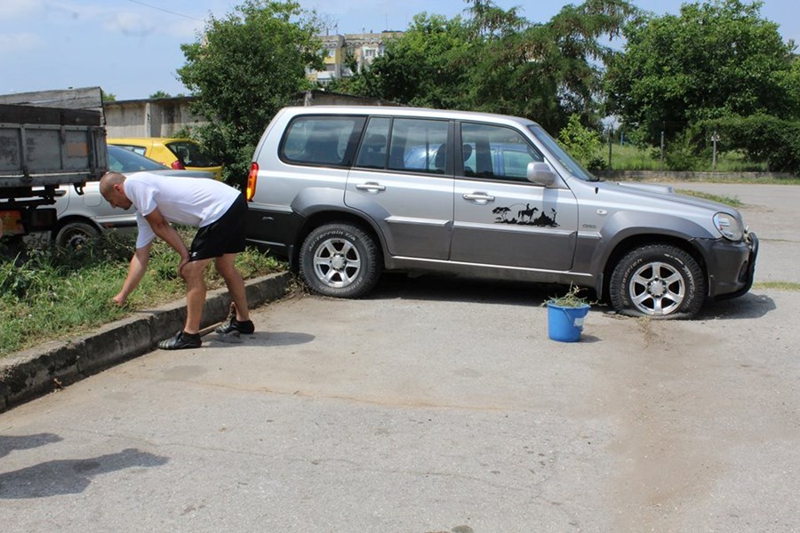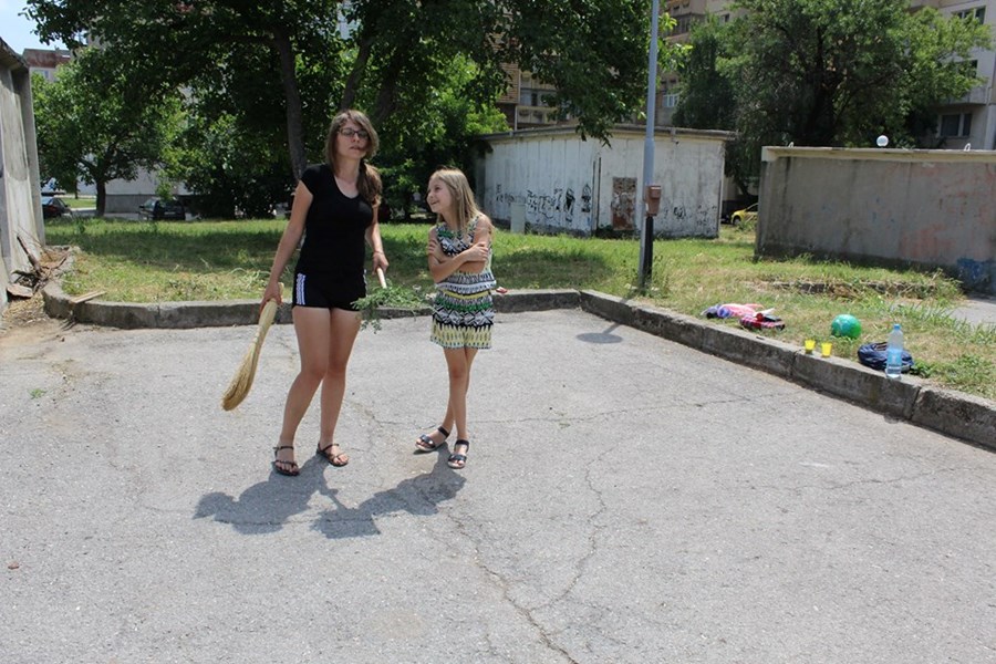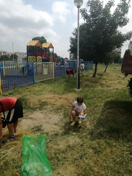 Днес група деца и техните родители почистиха детската площадка и спортното игрище до блок 305 в квартал „Чародейка”- Север.