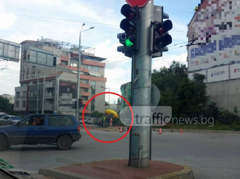 Сценката се разиграва на кръстовището на булевард „Дунав” и улица „Васил Левски” в Кършияка. Именно от това място вчера друг читател е алармирал за „запалил се автомобил”. Проверка обаче е показала, че горящи коли там няма. Вместо това „димът”, носещ се из кръстовището, е бил пара от голяма ВиК авария, която работници отстраняват. Изглежда, работата по нея продължава и днес, но подкрепена с хапване. Неделя е, все пак.