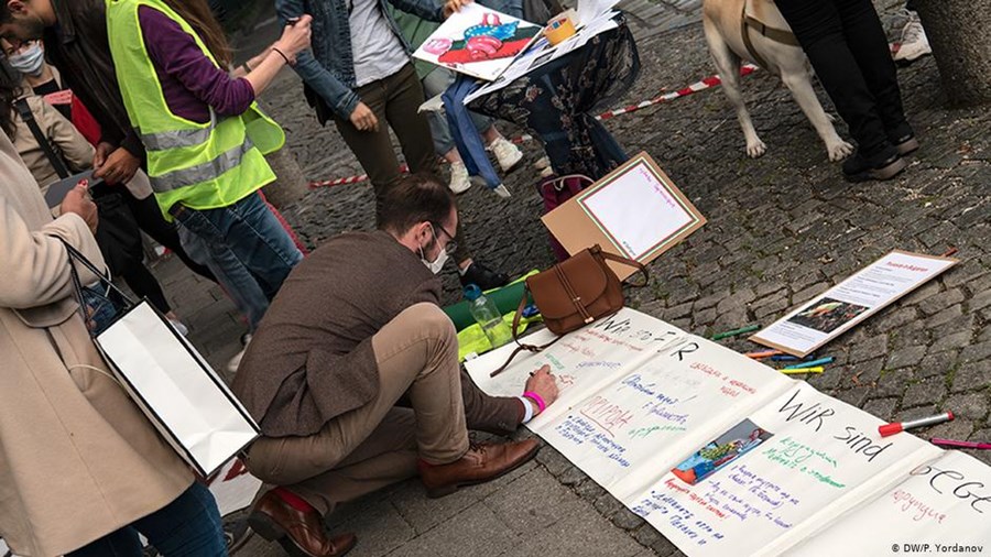 "Не искаме да живеем в такава България. Не искаме нашите роднини и нашите близки да живеят в такава България. Искаме настояще и бъдеще, което е адекватно за ЕС през 2020 година." Тези думи са на Мирослав Тодоров - един от десетките демонстранти в Мюнхен, излезли на 2 септември на улицата в знак на солидарност с протестите в България. Протестът в баварската столица се проведе пред представителството на Европейската комисия (ЕК). Под мотото #EUAREYOUBLIND българските граждани потърсиха диалог с ЕК, пише Дойче Веле.