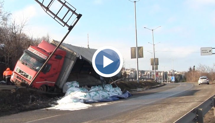 Тежкотоварният камион е пътувал от Турция за Румъния, натоварен с чували с индустриални смеси. На сух и прав участък на булевард "България" водачът изгубил управление на превозното средство и се ударил в разделителната мантинела. След това заради тежестта на товара камиона се преобърнал при което съборил билборд, а индустриалните смеси са разпелили на пътното платно.
