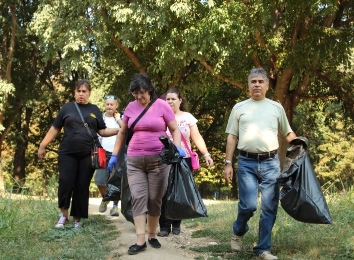 Доброволците от администрацията чистиха района от Пантеона на възрожденците по посока Руското консулство.