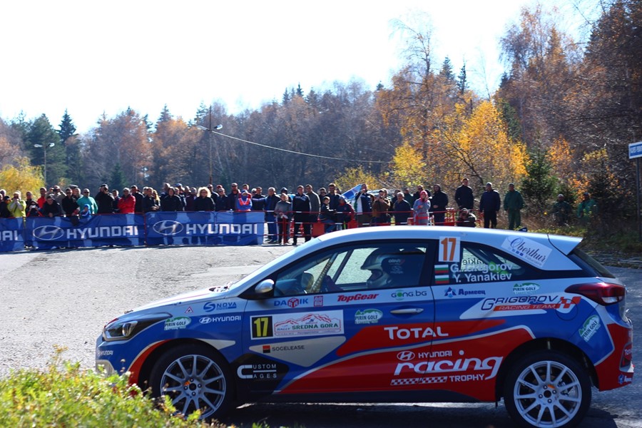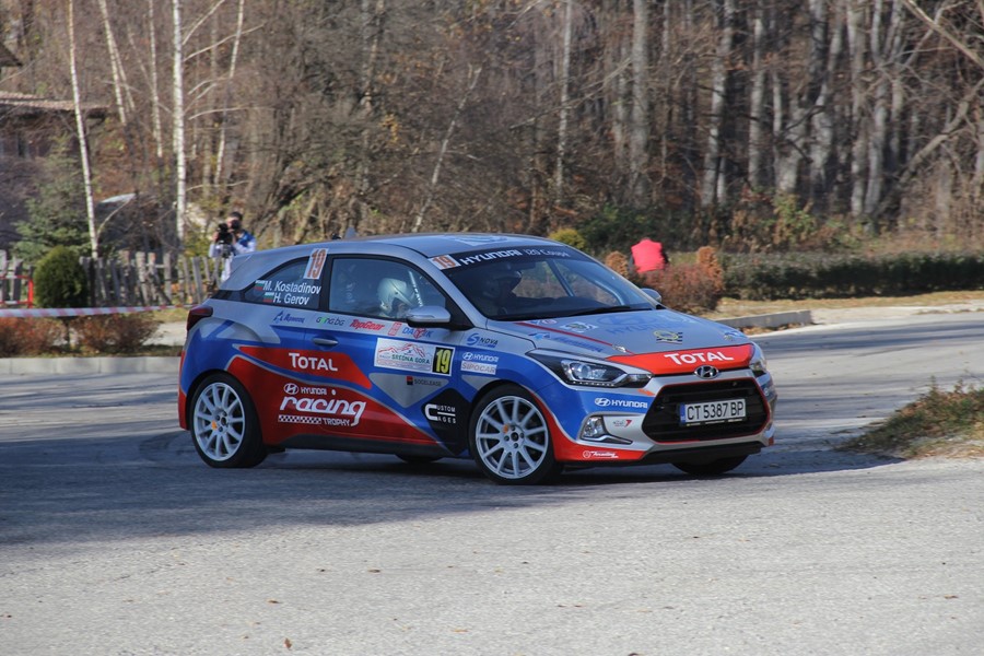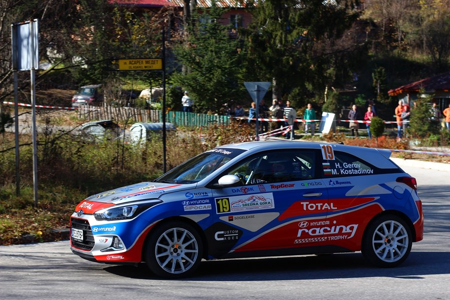 Екипажът Христо Геров/Марин Костадинов беше най-бърз в първия ден от шестия, финален кръг на едномарковия шампионат Hyundai Racing Trophy, част от рали „Средна гора“.
