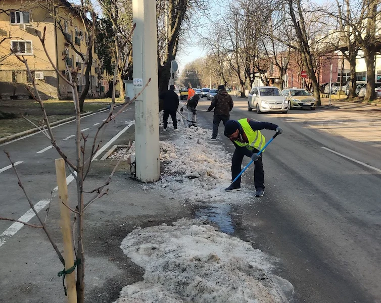 Служители на сметопочистващата фирма са мобилизирани за ръчно и машинно метене на над 20 основни улици и булеварда, сред които "Фердинанд", "Придунавски" и "Плиска".