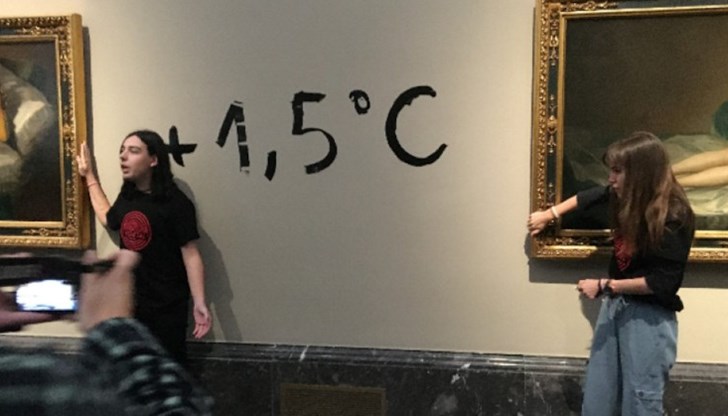 Екоактивисти залепиха ръцете си за рамките на две творби на Франсиско Гоя в музея "Прадо" в Мадрид в протест срещу "бездействието на властите" срещу глобалното затопляне, предава БНР.