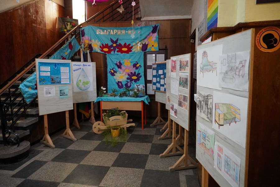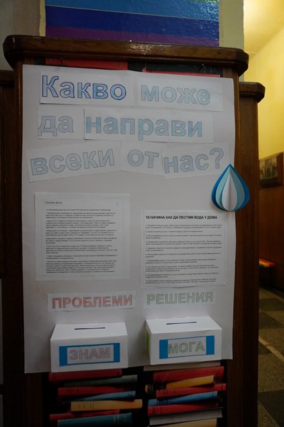 В часа на класа за Световния ден на водата се проведе тематична викторина за опазване на водата като най-ценното богатство на Планетата. Екопатрули засадиха цветя и подготвиха арт инсталация пред гимназията, която привлече вниманието на всички с ярките си цветове и украсата от естествени цветя. Постер „Какво може да направи всеки от нас?“ с информационна цел събра идеите значението на водата, съвременните проблеми и решаването им.