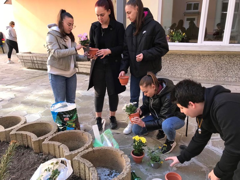 Екопатрули засадиха цветя пред ПГДВА „Йосиф Вондрак“