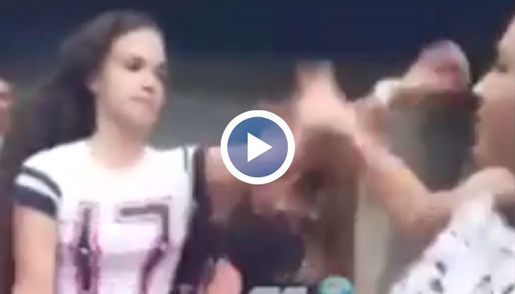 Ексклузивно видео от боя между 14-годишните Елеонора и Маргарет в Пловдив. Случката се разиграва точно под прозорците на кмета на район "Южен" и на метри от Първо районно управление.