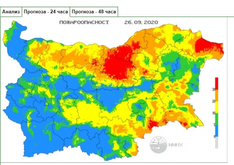 Екстремален индекс за пожароопасност е в сила за територии от 8 области в страната.