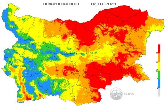 НИМХ обяви червен код за опасност от пожари в Северна и Югоизточна България на 2 юли 2024 г.