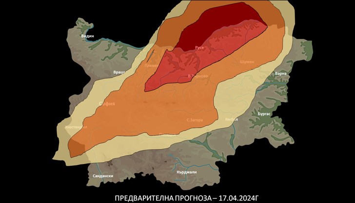 По информация на Националния институт по метеорология и хидрология в следобедните часове и привечер в сряда - 17 април, и през нощта срещу четвъртък се очаква през територията на общината или в части от нея да премине добре изразен студен фронт на атлантически циклон от запад-северозапад. Той ще доведе до локални интензивни дъждове, гръмотевици и силен вятър, т. нар. шквал – 15-20 м/сек, с многократно променяне на посоката. Възможни са и градушки.