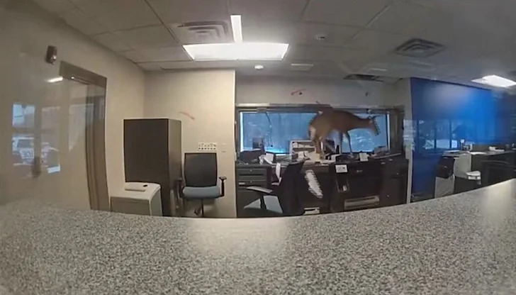 Пристигналите на място служители на реда откриват разбит прозорец и хаос вътре в помещението, но вместо въоръжени бандити, намират панически тичащ елен. Животното е успяло да влезе през витрината, но не е могло да намери изход, нанасяйки сериозни материални щети на офис оборудването в опитите си да избяга.