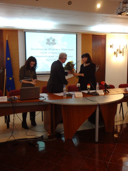 В заключение, г-жа Елеонора Николова изказа своите добри впечатления от дейността на Областния обществен съвет за превенция и противодействие на корупцията, като засвидетелства думите си с примери, изведени на базата на анализ за дейността на съветите във всички областни администрации в България.
