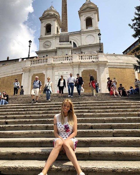 Чаровната блондинка вече ги зарадва с кадри от различни забележителности, сред които фонтана „Ди Треви“, пише Монитор.