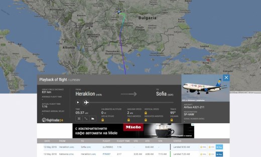 Машината с регистрация SP-HAW излетяла в 8:37 часа българско време от Ираклио. Час по-късно променила маршрута си и се насочила за кацане в София. В 10:01 минути колесарът докоснал пистата на аерогарата.