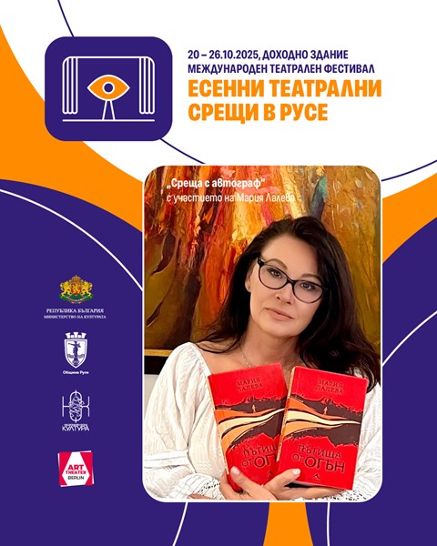 Международният театрален фестивал „Есенни театрални срещи в Русе" ще предложи истински празник за любителите на театъра от 20 до 26 октомври 2025 г. Фестивалът, организиран от Катя Костова, председател на сдружение „Кауза Пещера" и Драматичен театър „Сава Огнянов", ще привлече едни от най-ярките звезди на българската сцена и ще предложи богата програма от спектакли и творчески срещи.