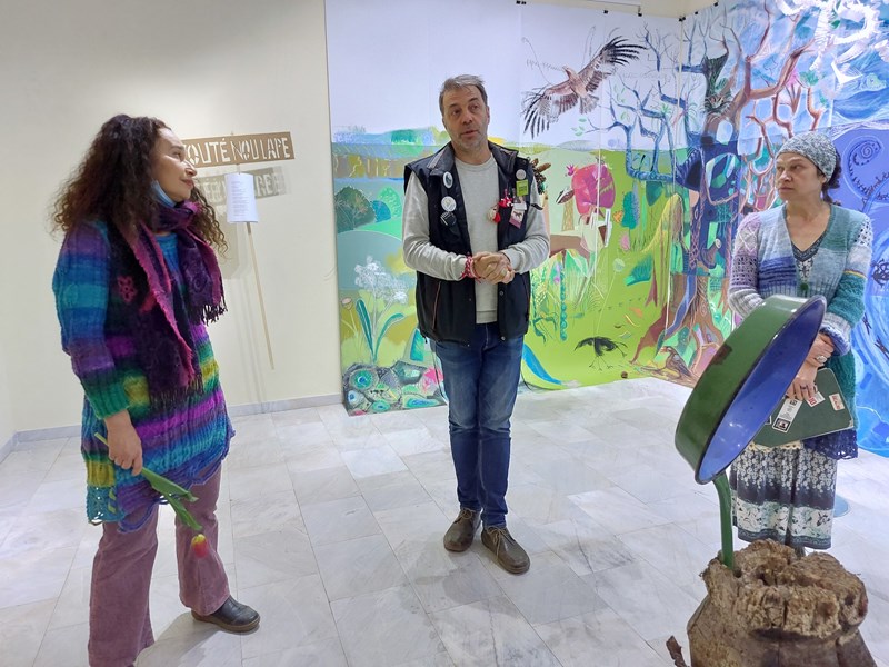 Изложбата ще остане в Екомузея в Русе до средата на април 2022. Родена през 1965, Еслица Попова завършва Националната художествена академия в София. Живее на карибския остров Сен Мартен, работи в различни жанрове и езици. Днес твори в Русе и в Нисово, в каньона на река Русенски Лом. Рисува с моливи, масло и пастели, шие, реже, изрязва хартия, изтегля и оформя вълна. Визуален артист, проектите й са в сферата на видео, инсталация, пърформанс, сценография. Прави анимация. През 2021 изложбата й „Изтъкани от българска въ̀лна“ беше създадена с подкрепата на НФК специално за Екомузея с аквариум в Русе, а след това беше представена в различни галерии.