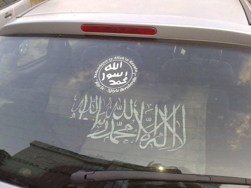 На едните фотоси се вижда знамето на Ислямска държава на стъклото на пловдивски автомобил.