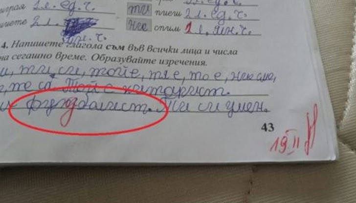 Тя е поправила своя ученик, като в думата е задраскала „т“ и е написала „д“ – фуДболист!