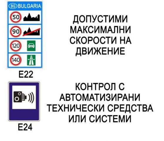 Стана ясно как ще изглеждат новите пътни знаци за обозначаване на началото и края на скоростните пътища, както и знакът, с който се дава информация за място или пътен участък, на който са поставени камери.