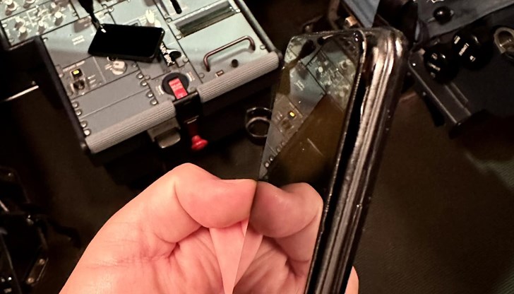 "Така изглежда смартфон, когато литиево-йонната му батерия прегрее. Тази снимка е от вчера и показва деформирания телефон на пътник."