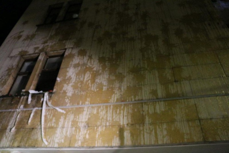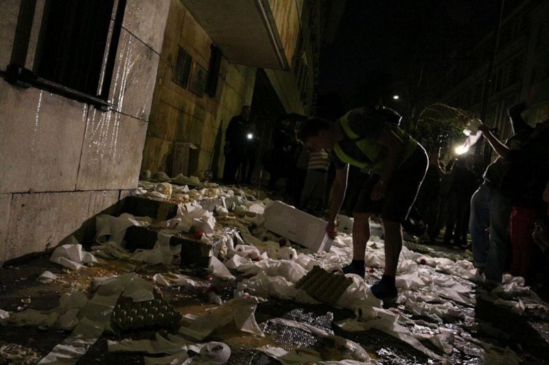 Следите от яйца се виждаха по цялата фасада на сградата на Министерството, а тоалетна хартия висеше от прозорците.