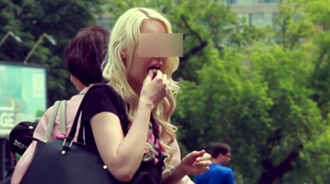 С това гаврата не спира. Едно момиче е готово да изяде банкнота от 1000 рубли, за да получи в замяна 5000 рубли. Какво ли ще е готова да направи за повече пари? 1000 рубли са около 30 лева.