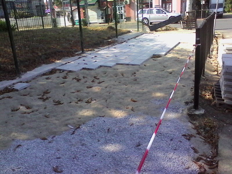 Това е тротоара до спирката на Mеханотехникума. При първия по-силен дъжд, плочките ще се разместят.