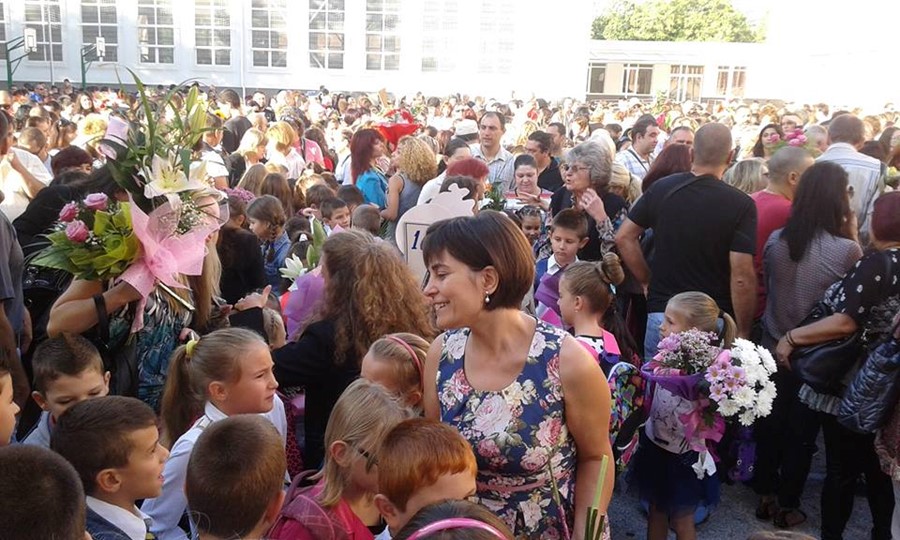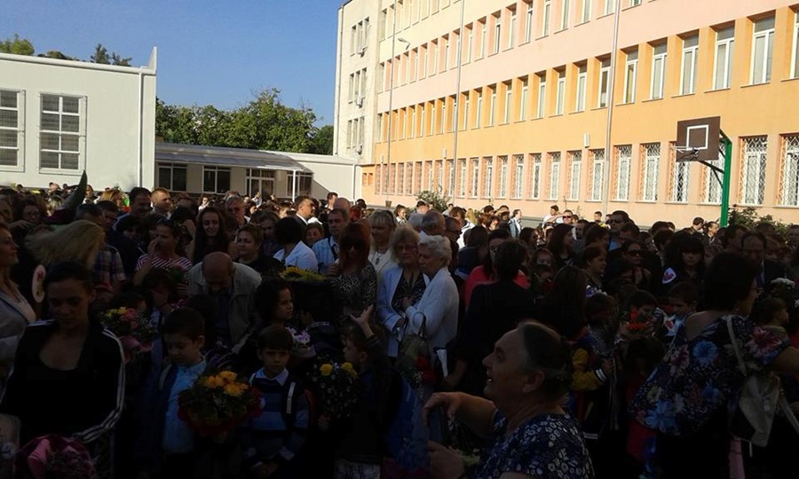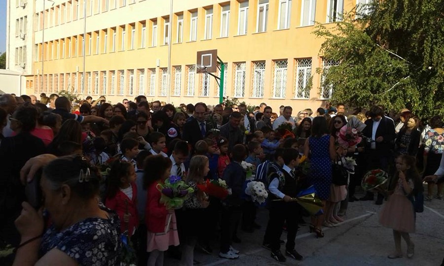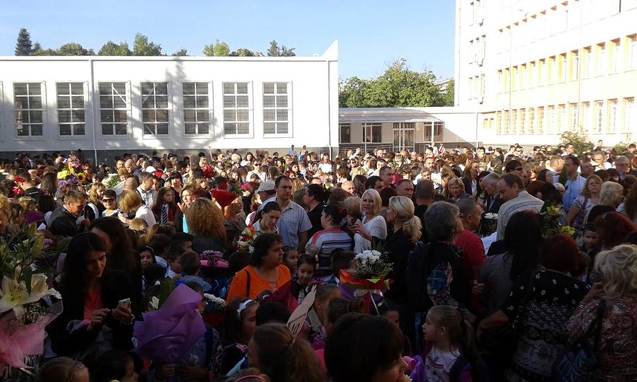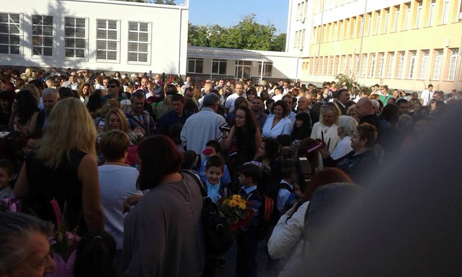 Дворовете на училищата се оказват тесни, за да поберат всички ученици и желаещите да ги придружат в този така значим момент.