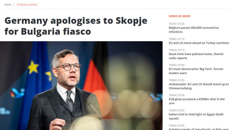 EUOBSERVER: Германия се извинява на Скопие за българското фиаско