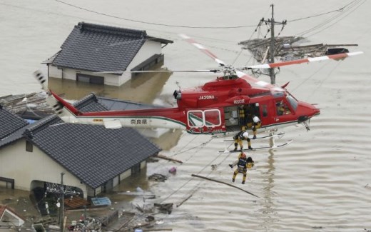Най-тежко е положението в префектура Хирошима. Там огромна територия буквално е потопена под вода.