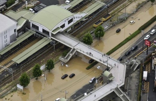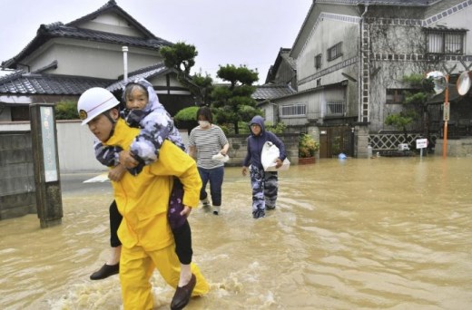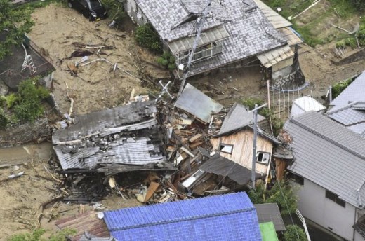 Продължителните проливни дъждове предизвикаха катастрофални наводнения и разрушителни свлачища в западната част на Япония.