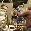 Местните жители и туристите, плюс над 100 домашни животни - 113 кучета от различни породи, три котки, заек и птица, пристигнаха с двата военни кораба в пристанището на Хейстингс, откъдето бяха закарани с автобуси до два спасителни центъра.