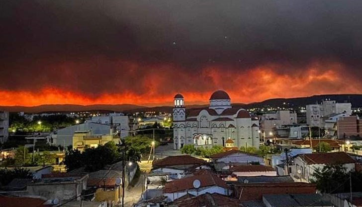 Пожарът гори в близост до Свето-Успенския манастир "Клистон", а жилищният квартал "Ано Лиосия" също е евакуиран.