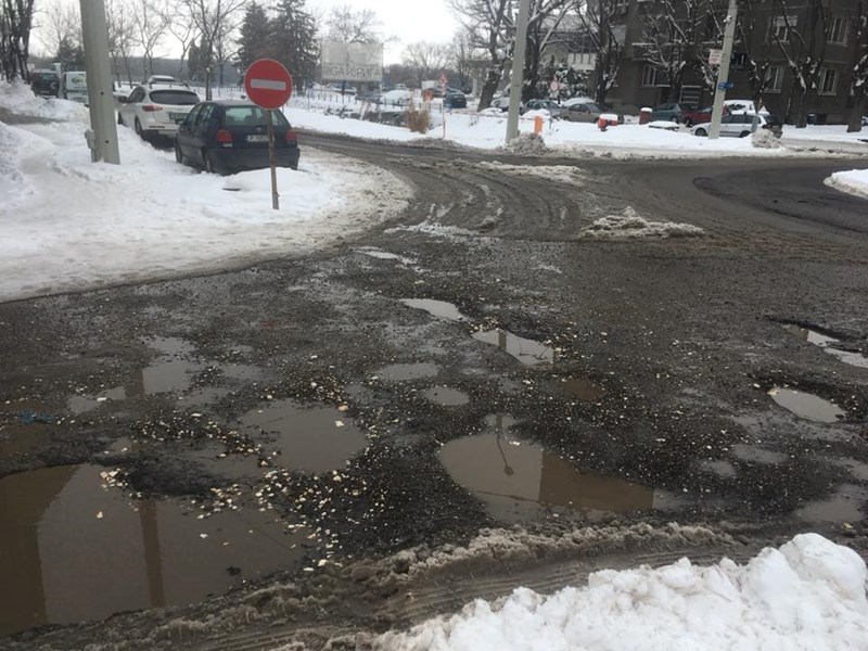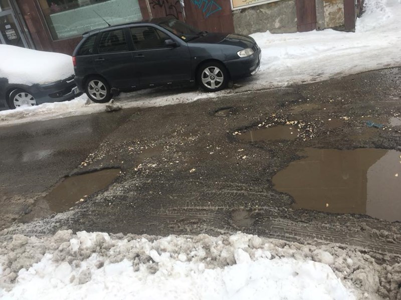 Постът е придружен от снимки, които са достатъчно красноречиви сами по себе си. Районът е осеян с дълбоки дупки, пълни с вода, в които хората трошат колите и нервите си.