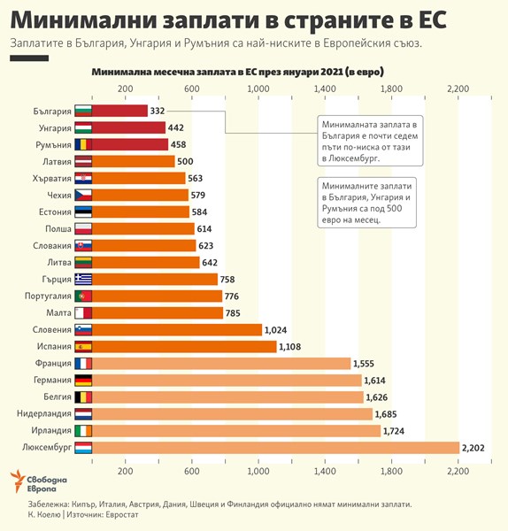 Тя е почти единствената, заедно с Румъния, страна без „ясни и стабилни критерии за определяне и осъвременяване на законоустановените МРЗ“. Унгария прилича на България, но там има изискване да се отчитат стопанските условия за развитие. Ако страната се съобрази с бъдещата директива, това изискване ще е от полза.
