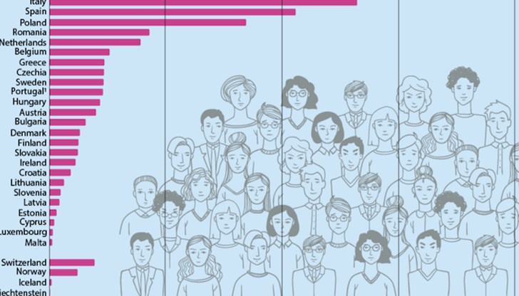 Евростат: Населението на България е намаляло със 77 600 души през изминалата година