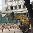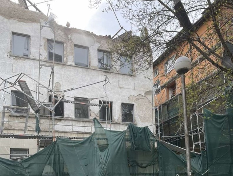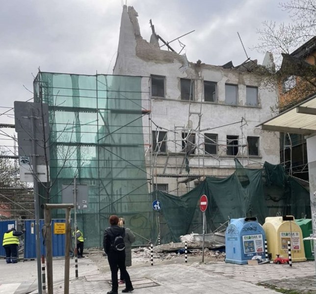 При разрушителните дейности стена е съборила изградените скелета и много парчета от сградата са паднали на улицата.