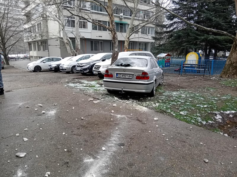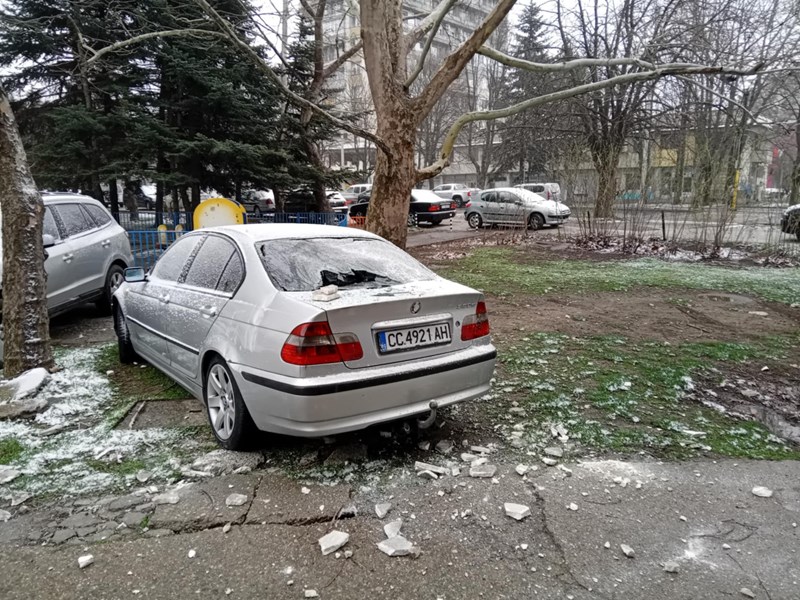 Фасадна плоча падна от блок и потроши автомобил в Русе