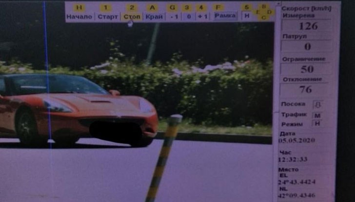 Камерите на пътните полицаи заснеха водач на Ферари със скорост 126 км/ч, съобщиха от ОД на МВР.